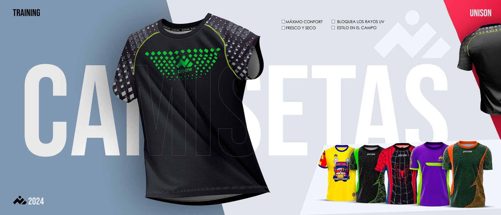 En Pro-One tenemos variedades de camisetas deportivas con varios diseños para que tu estilo en la cancha sea con comodidad y perfecta actitud.
